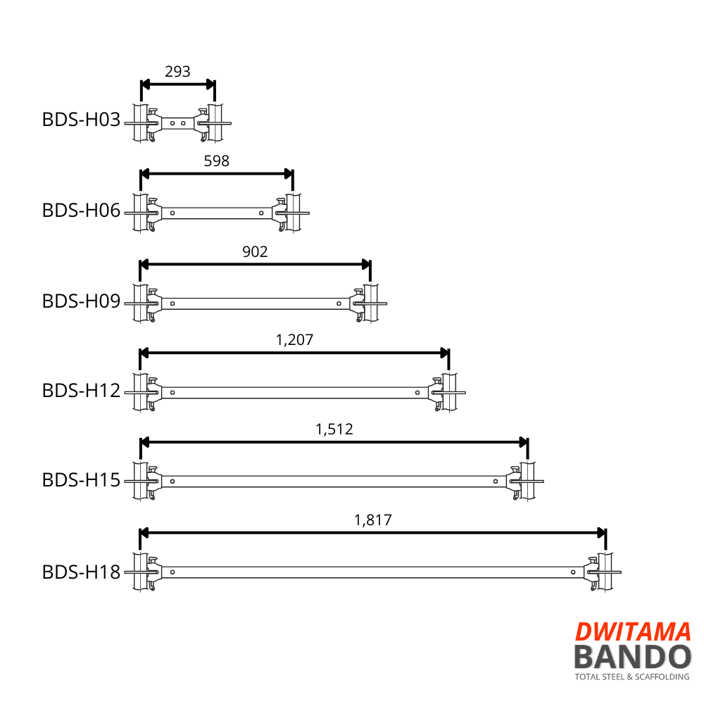 Digunakan untuk mengikat antar vertical (standard), membentuk kestabilan rangka, serta mendukung platform kerja pada struktur scaffolding.