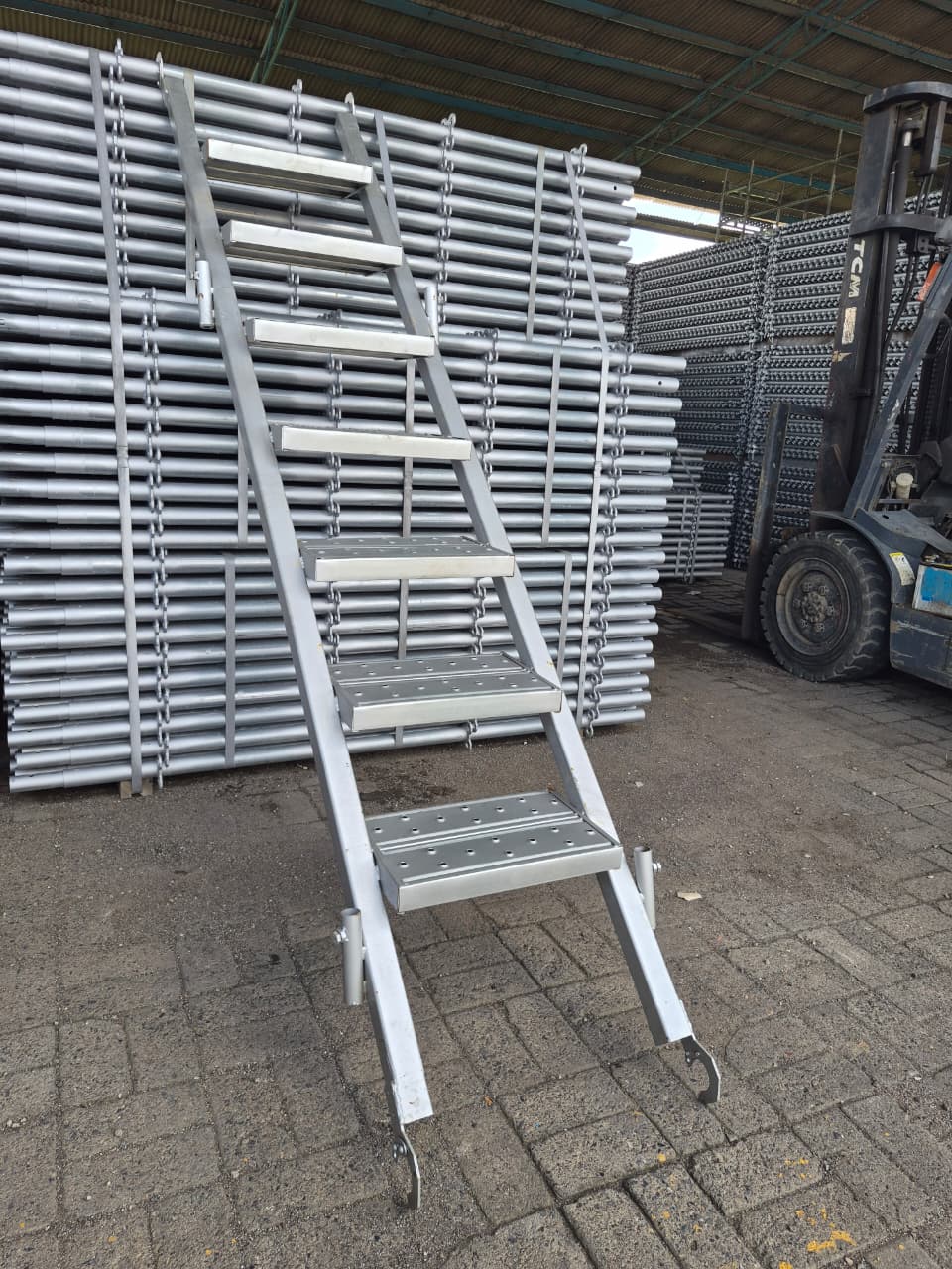 Stair / Tangga merupakan komponen akses dalam sistem scaffolding yang digunakan sebagai sarana naik dan turun antar level kerja. Komponen ini dirancang untuk mendukung mobilitas pekerja secara lebih aman dan terarah dibandingkan penggunaan tangga sementara.